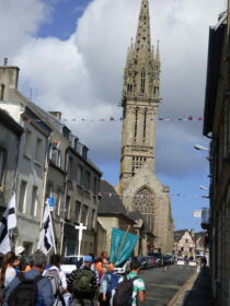 Cette prochaine étape se déroulera donc sur ces six journées pour aller de St-Pol-de-Léon à Tréguier, soit une distance d’environ 120 kilomètres, en étapes de 20 à 30 km par jour. Prières, chants et bonne humeur seront le quotidien de ces journées de marche sous le soleil (assuré) d’un été radieux – mais toujours clément en Bretagne -, et la fatigue sera tempérée par une logistique toujours présente : les vivres et bagages encombrants pour la marche sont acheminés par les véhicules accompagnateurs, et l’équipe d’intendance assure la fourniture et la préparation des repas, ainsi que les petits déjeuners. Ces haltes ont été définies au gré des étapes quotidiennes afin d’assurer le bivouac sous tente personnelle dans les meilleures conditions, elles sont l’occasion de veillées de détente ou de recueillement.