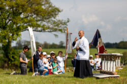 Accompagnés de l’abbé Laurençon, les chapitres adultes, enfants et scouts de la région Anjou-Maine Vendée ont renouvelé la consécration des pèlerins et des familles aux saints Cœurs unis de Jésus et Marie.