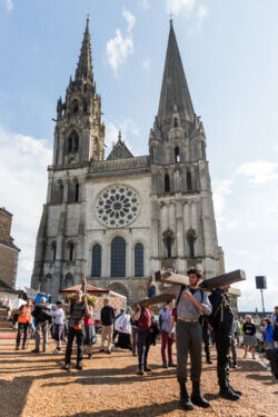 « Fous de Dieu », vous le serez, car vous pourriez rester au sein de votre chapitre pendant ces 3 jours de pèlerinage, mais… si cela vous est possible, le faire en portant la croix et les statues est plus méritoire.