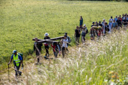 Comme chaque année, de généreux pèlerins se relaieront pour porter la croix et les statues du Sacré-Cœur et de la Sainte Vierge, en tête de pèlerinage.