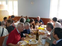 Au cours de ces journées, nous avons évoqué les différents points que nous voulions exposer tels que la création éventuelle d’une halte pèlerins en Espagne, la création d’une bannière/oriflamme (pour lesquels vos suggestions sont toujours d’actualité) et bien évidemment le futur pèlerinage d’Écône vers Assise du 30 Juin au 7/8 Août 2018. Pourtant, l’élément le plus important fut la joie des anciens jacquets de se retrouver et de faire connaissance avec les conjoints et pour certains leurs enfants que nous pouvons imaginer futurs Jacquets. L’ambiance conviviale et amicale reflétait bien l’état d’esprit du pèlerin jacquet qui est tout de joie et de partage que ce soit au cours du traditionnel « pot » ou lors de la présentation de photos des parcours précédents. À ce sujet remercions particulièrement notre amis Thierry qui nous a gratifiés d’un montage vidéo retraçant d’une fort belle manière le dernier pèlerinage de Santiago à Fatima. Son document est un véritable argumentaire publicitaire et ne peut que susciter l’envie de participer en s’engageant (signez ici… ! Engagez-vous, rengagez-vous !…) lors d’un futur pèlerinage.