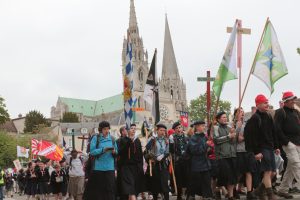 Après deux ans d’interruption, Chartres-Paris, c’est reparti ! « Nous sommes la jeunesse de Dieu » tel est le thème enthousiasmant