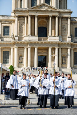 Au terme de la majestueuse procession des pèlerins dans la capitale française, le supérieur du district de France, l’abbé Benoît de Jorna, a célébré la messe de clôture du pèlerinage au pied de la cathédrale Saint-Louis-des-Invalides sous un soleil radieux.